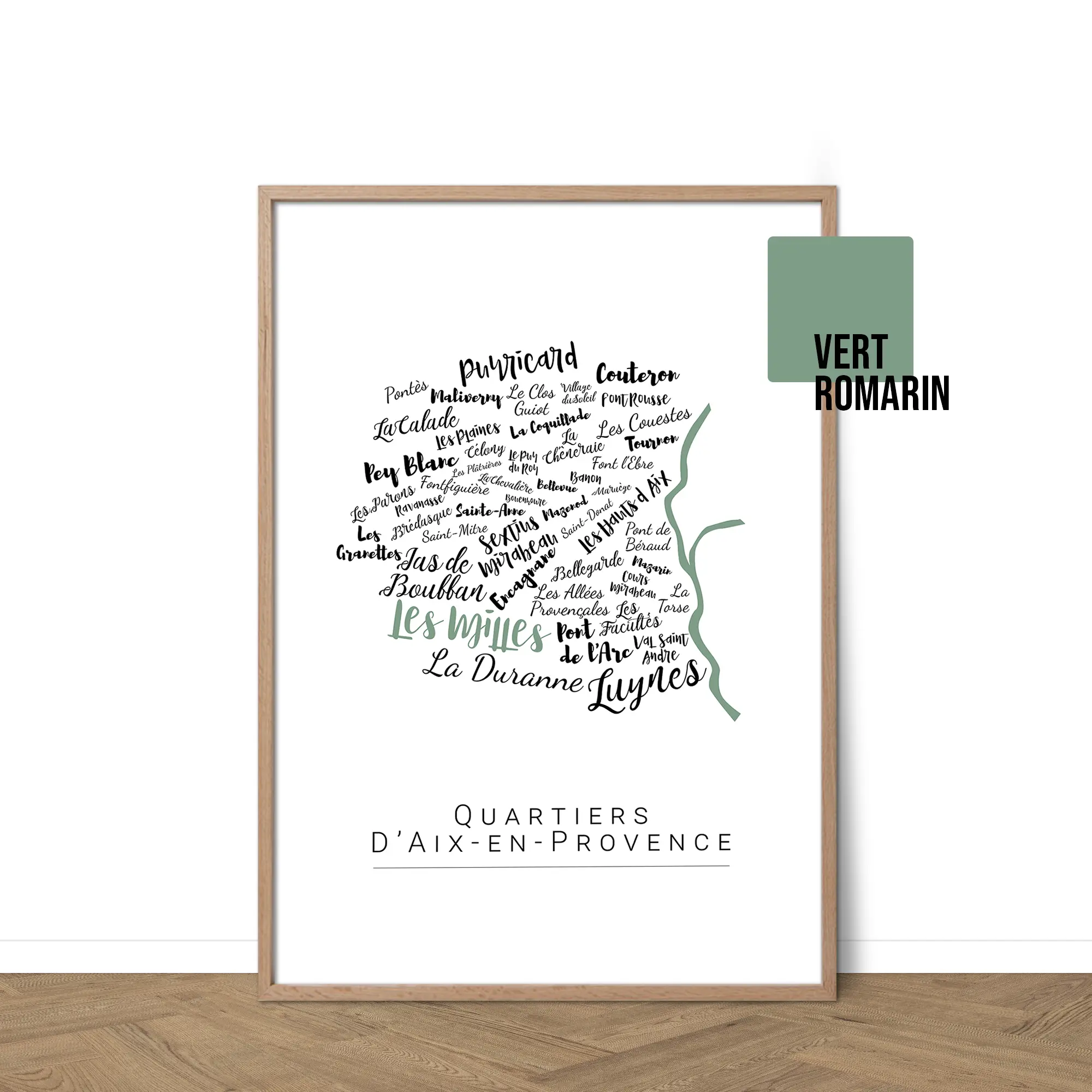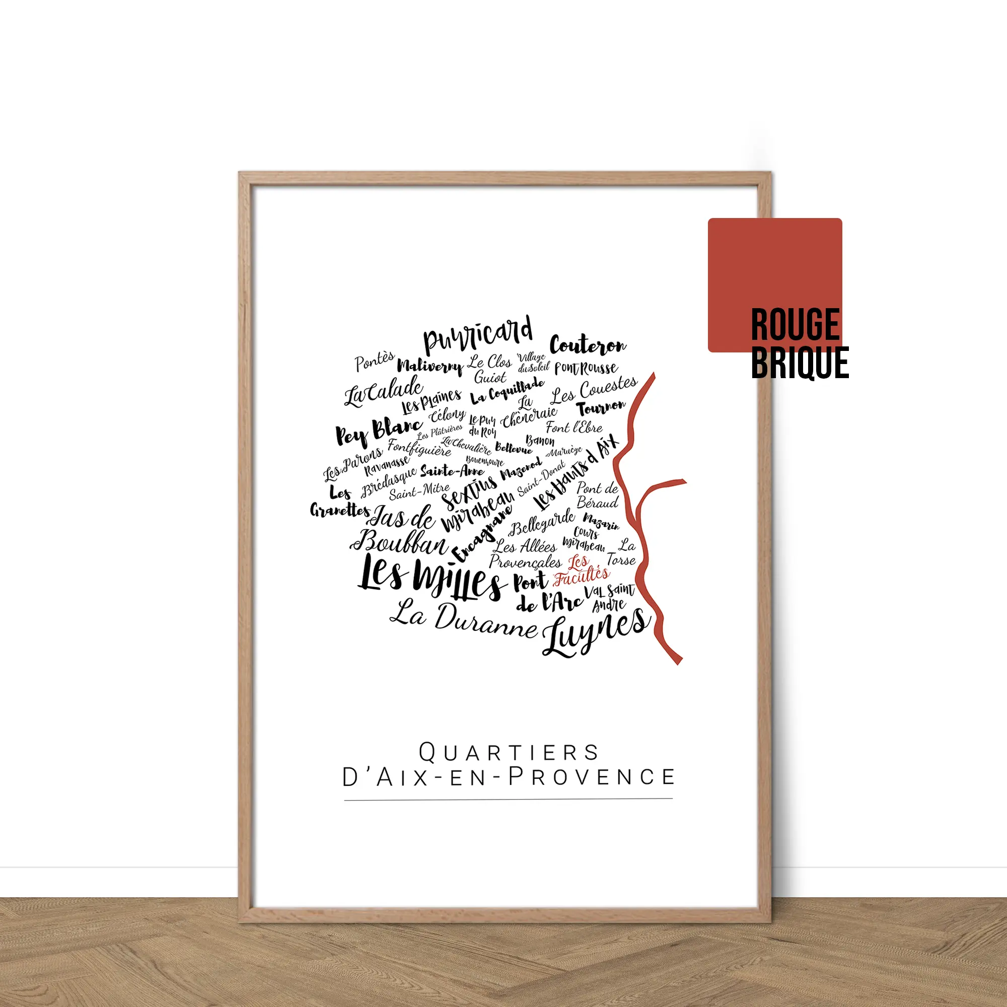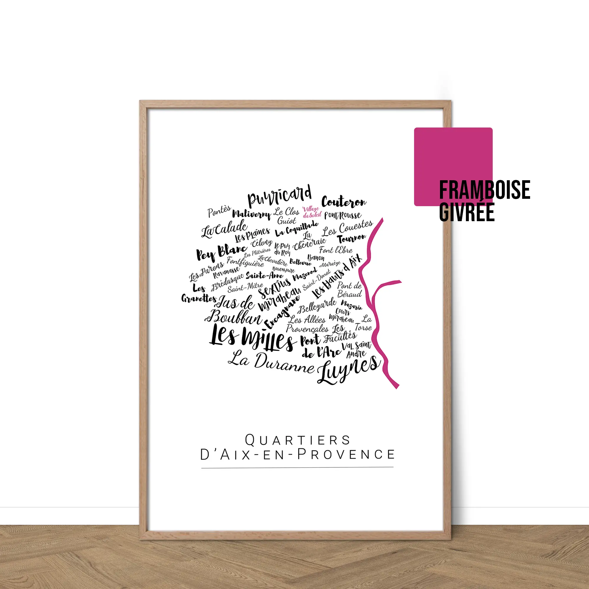 Redécouvrez Aix-en-Provence à travers une carte avec les noms de ses quartiers emblématiques, du Cours Mirabeau au Jas de Bouffan. Chaque nom est délicatement calligraphié, évoquant la lumière, la culture et l’art de vivre aixois. Son design épuré et personnalisable s’intègre naturellement à tous les intérieurs. Plus qu’une affiche, c’est un hommage à une ville solaire, à accrocher chez soi ou à offrir.