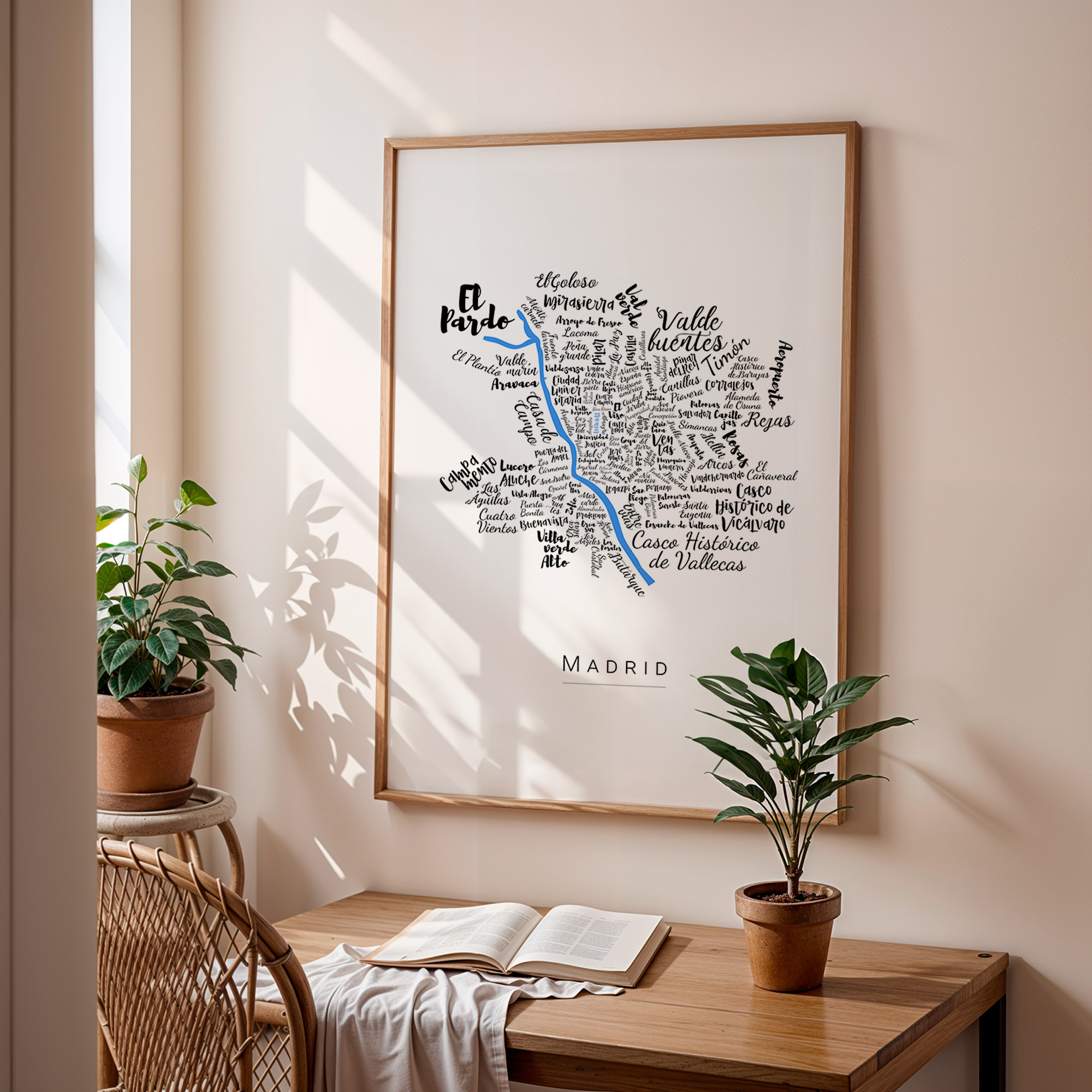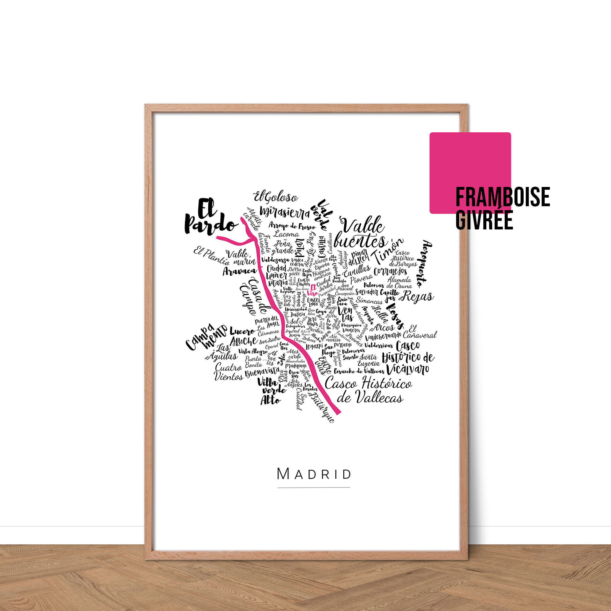 Découvrez Madrid à travers une carte graphique de ses quartiers. La typographie élégante évoque une ville vibrante et chaleureuse. Personnalisable, elle s’adapte à tous les intérieurs. Une affiche idéale pour garder Madrid près de soi.