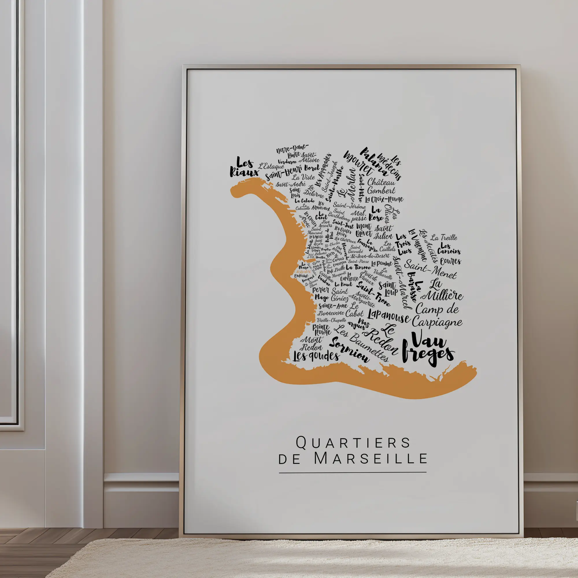 Cette affiche de Marseille met en valeur ses quartiers entre mer et collines. Son design graphique reflète l’âme intense et solaire de la ville. Personnalisable en couleur, elle s’intègre à tous les styles. Une affiche pleine de tempérament.