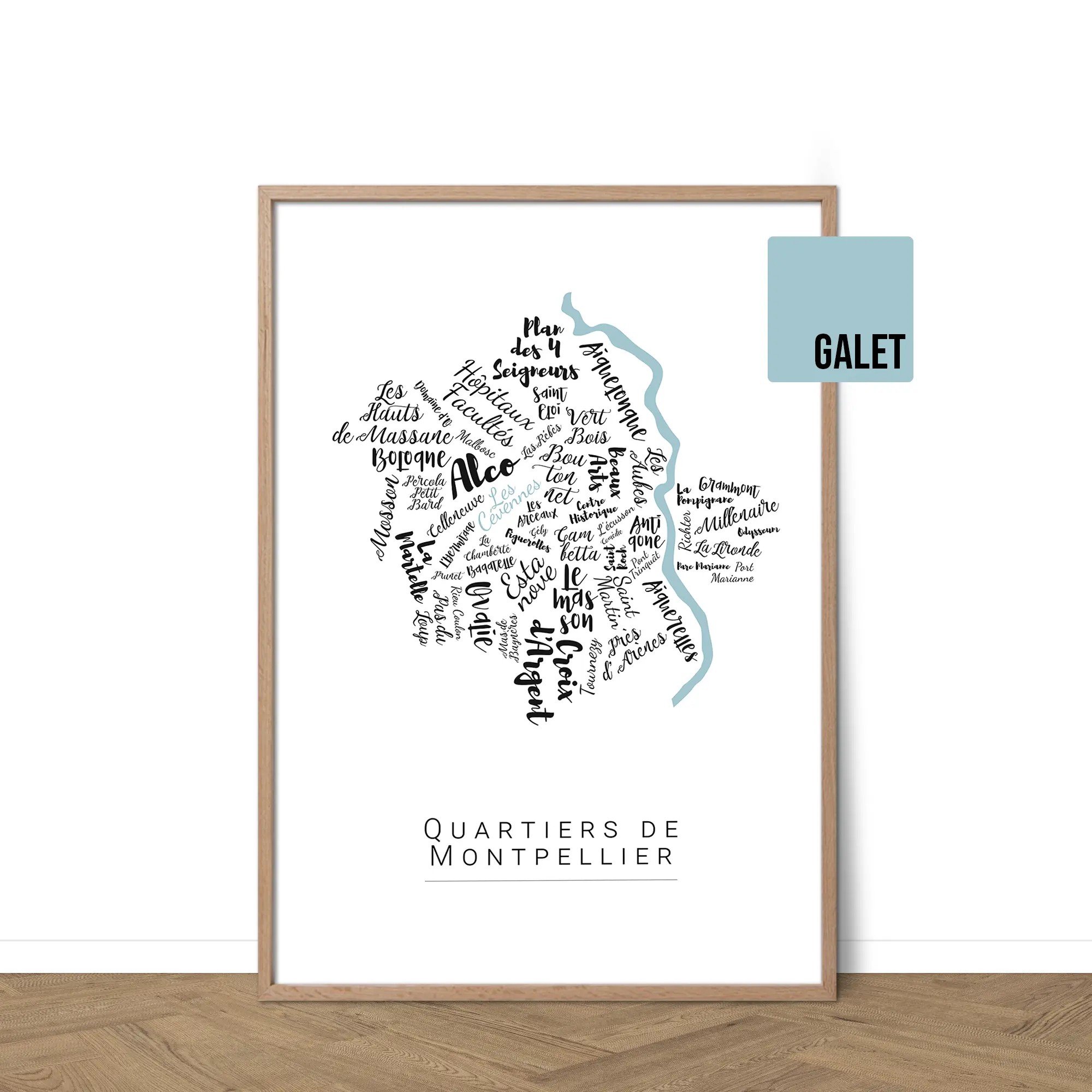 Redécouvrez Montpellier à travers une carte très originale de ses quartiers. Son design épuré évoque une ville jeune, ensoleillée et dynamique. Personnalisable, elle s’intègre facilement à votre intérieur. Une affiche lumineuse et contemporaine personnalisable.