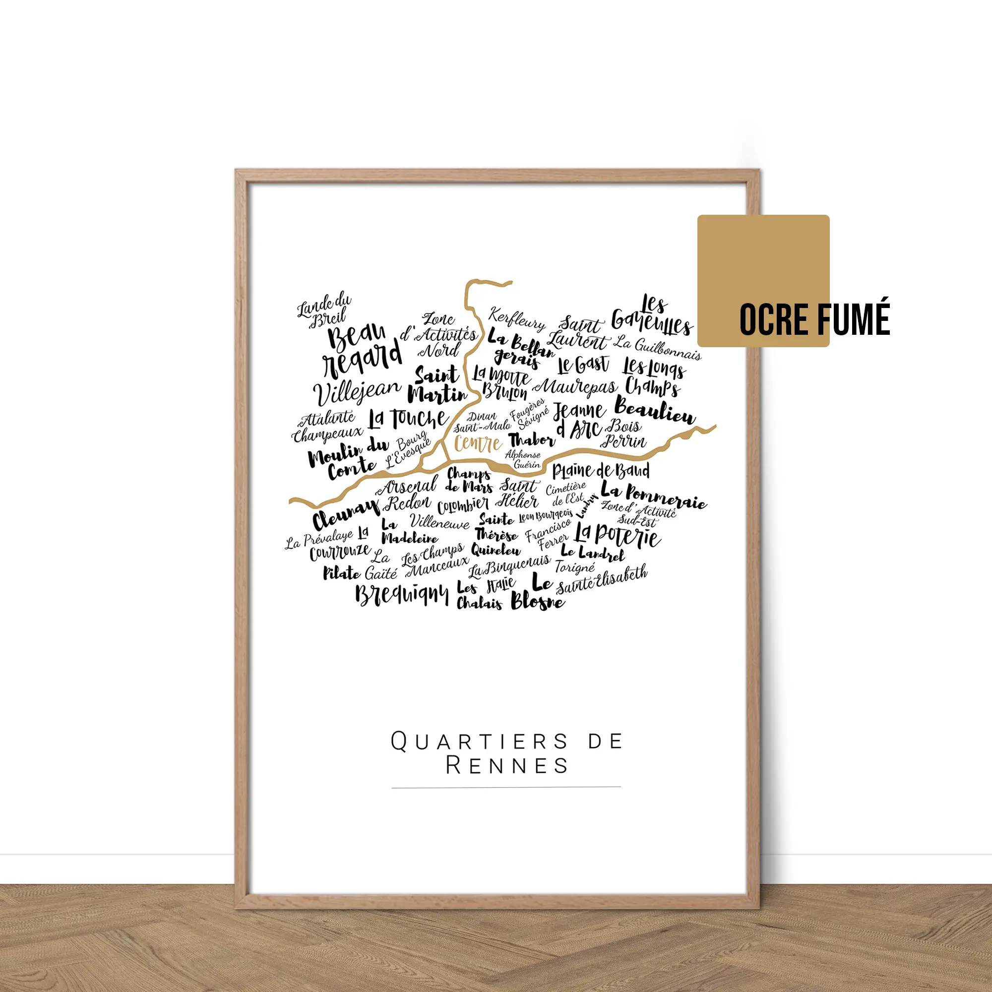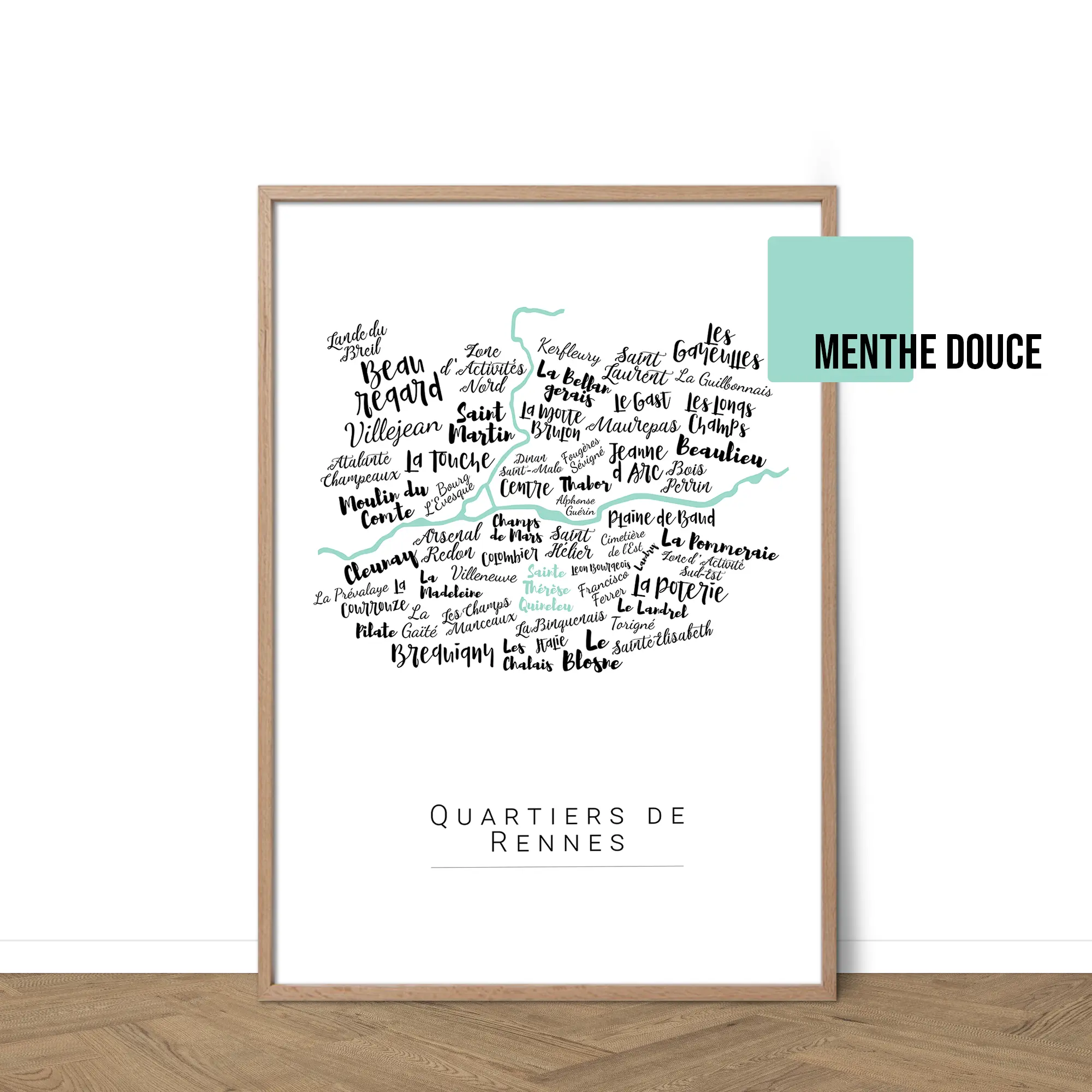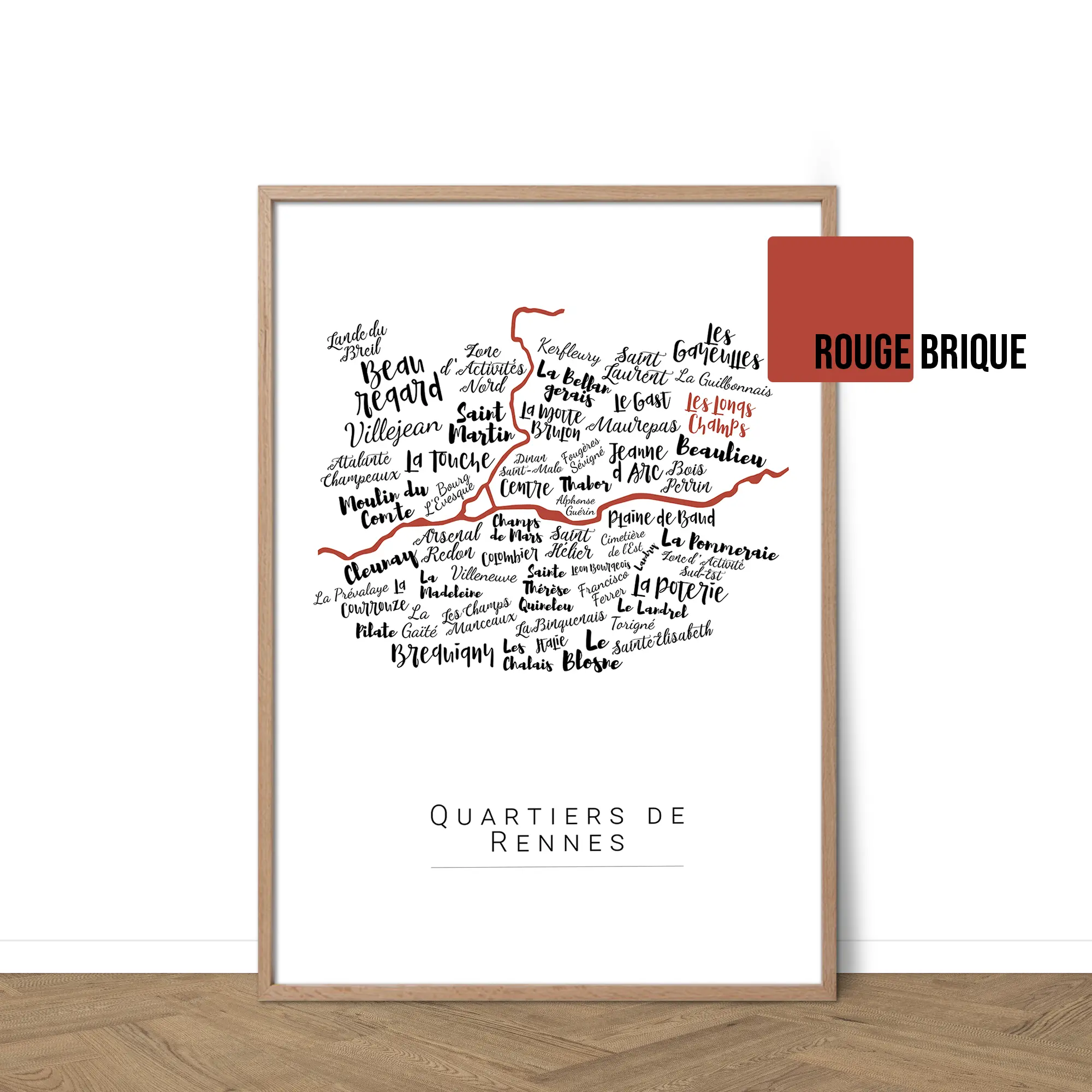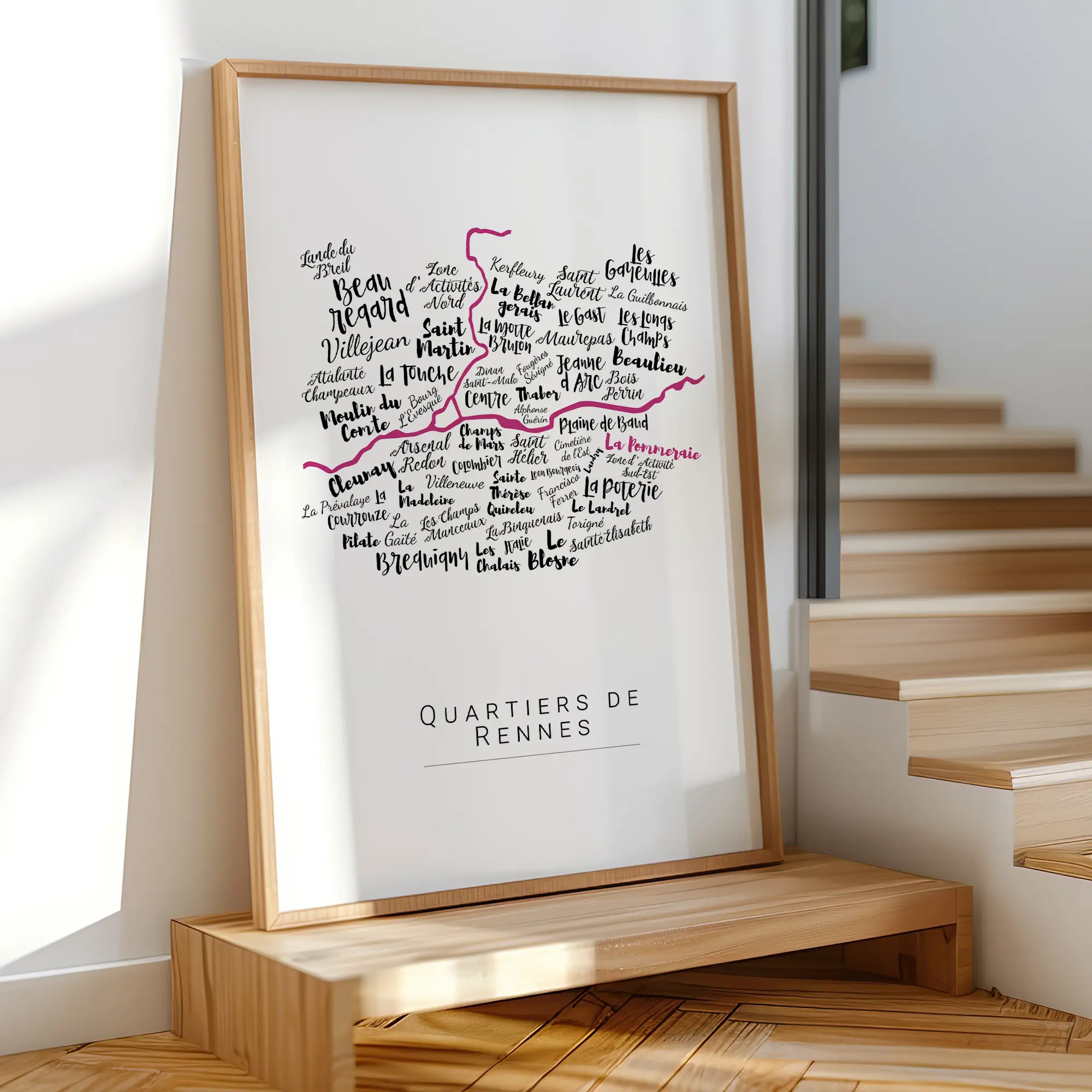 Découvrez Rennes à travers une carte moderne et typographique de ses quartiers. Son design épuré reflète l’énergie et l’identité de la ville. Personnalisable, elle s’adapte à tous les styles. Une affiche idéale pour les Rennais de cœur.