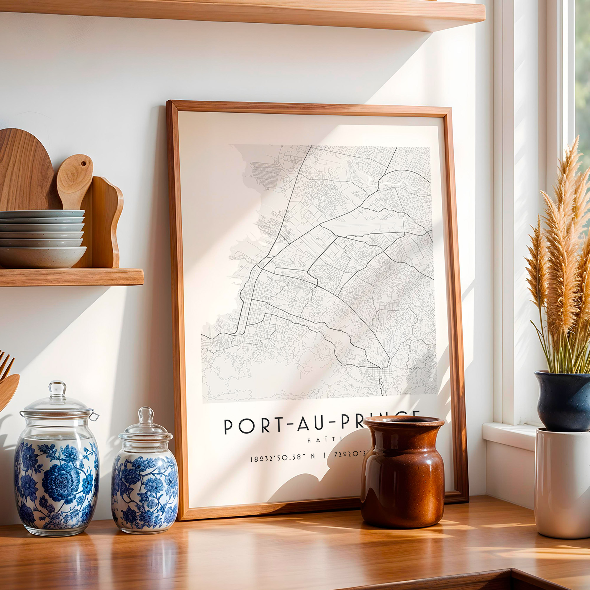 Cette carte de Port-au-Prince en noir et blanc révèle la ville à travers un tracé moderne et épuré. Elle apporte une touche contemporaine et ouverte sur le monde à votre décoration. Une carte de voyage forte et originale.