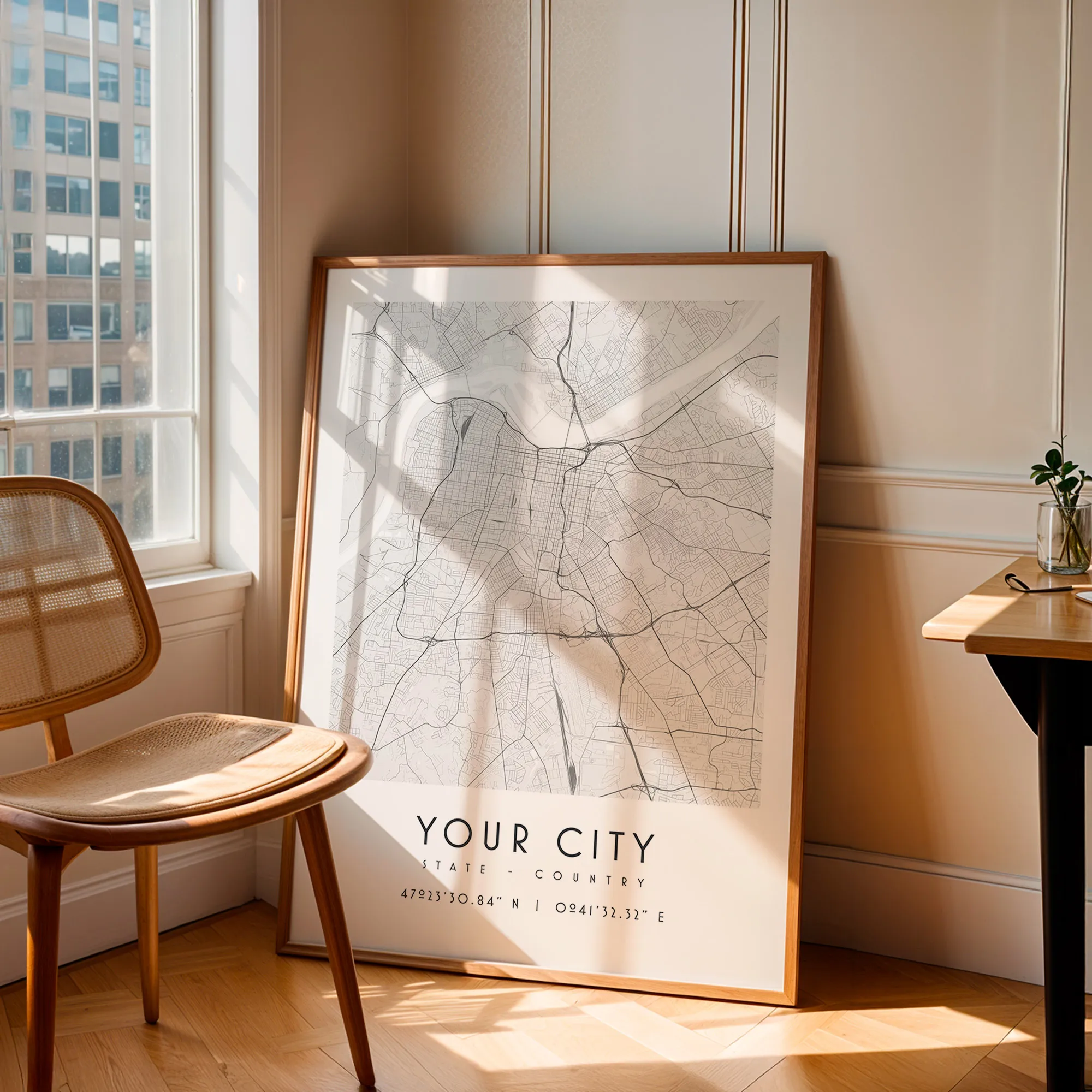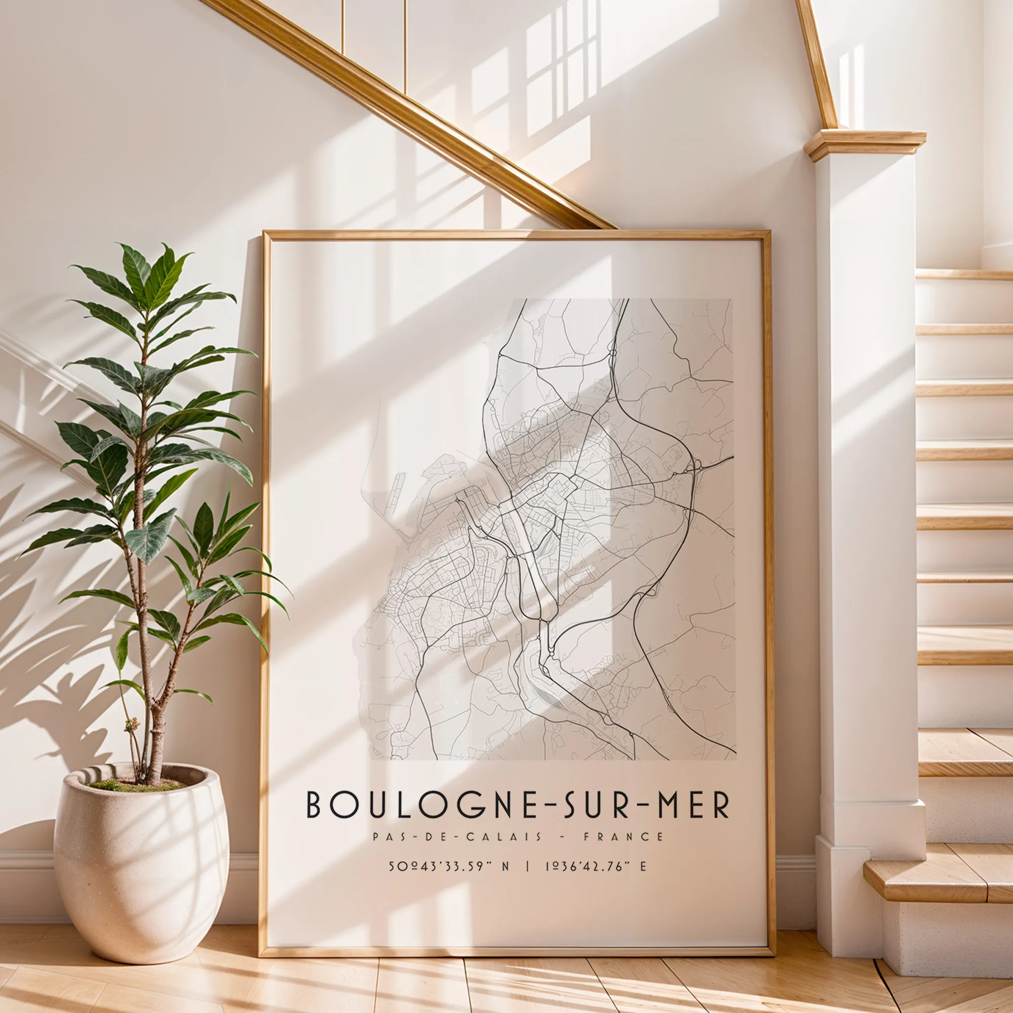 Créez votre carte de ville personnalisée à partir du lieu de votre choix et transformez vos souvenirs en décoration murale élégante. Ville, village, île ou région : chaque carte est dessinée sur mesure, avec un tracé précis des rues dans un style noir et blanc épuré, graphique et intemporel.