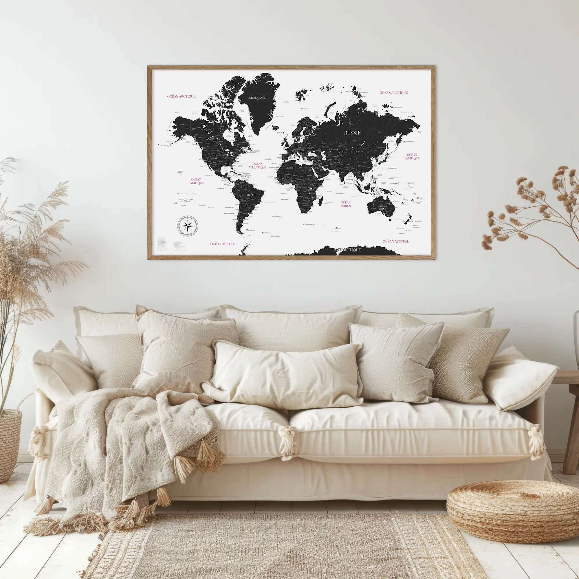 Carte du monde noir et blanc Inès — Contraste et élégance