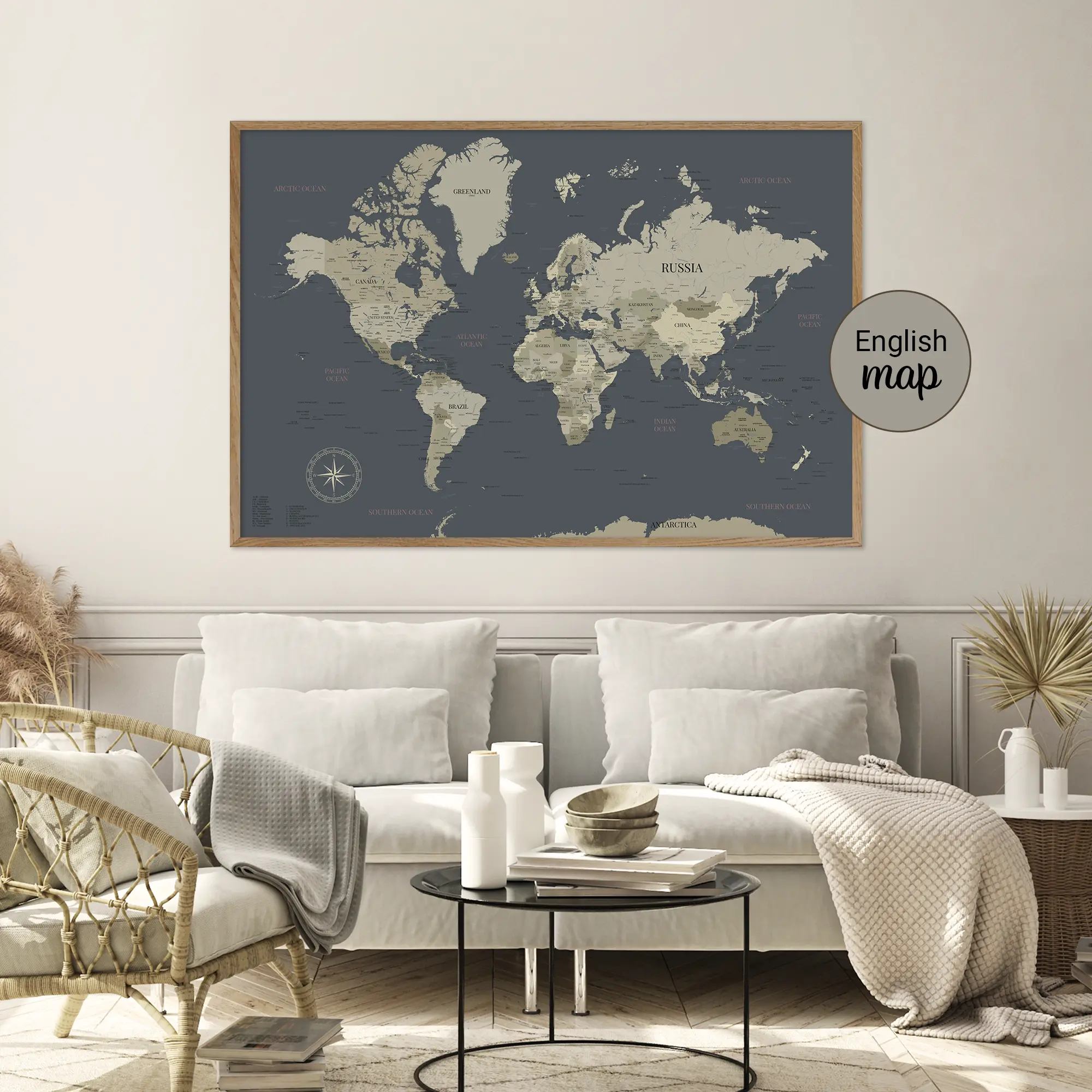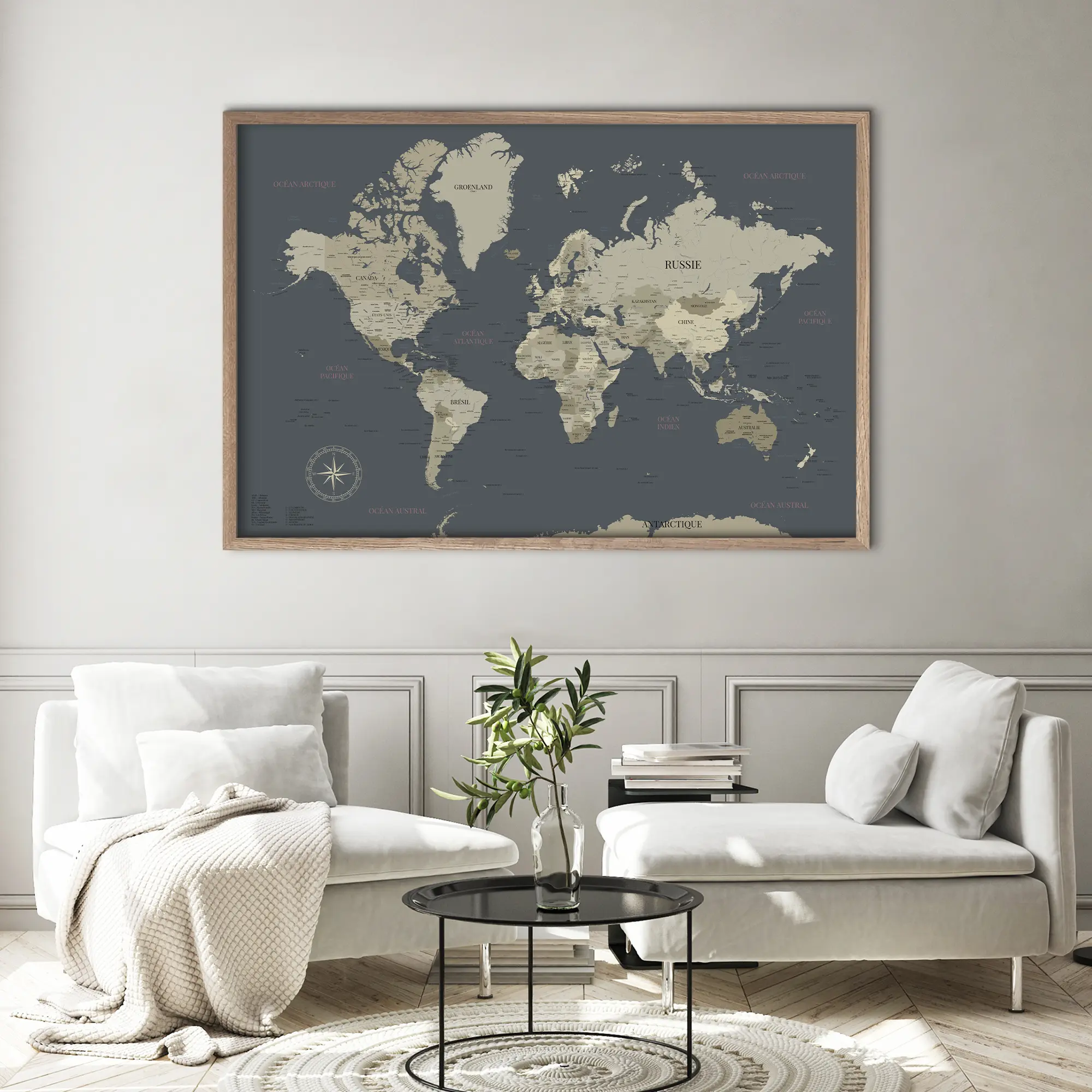 Découvrez la collection complète de nos cartes du monde décoratives murales.