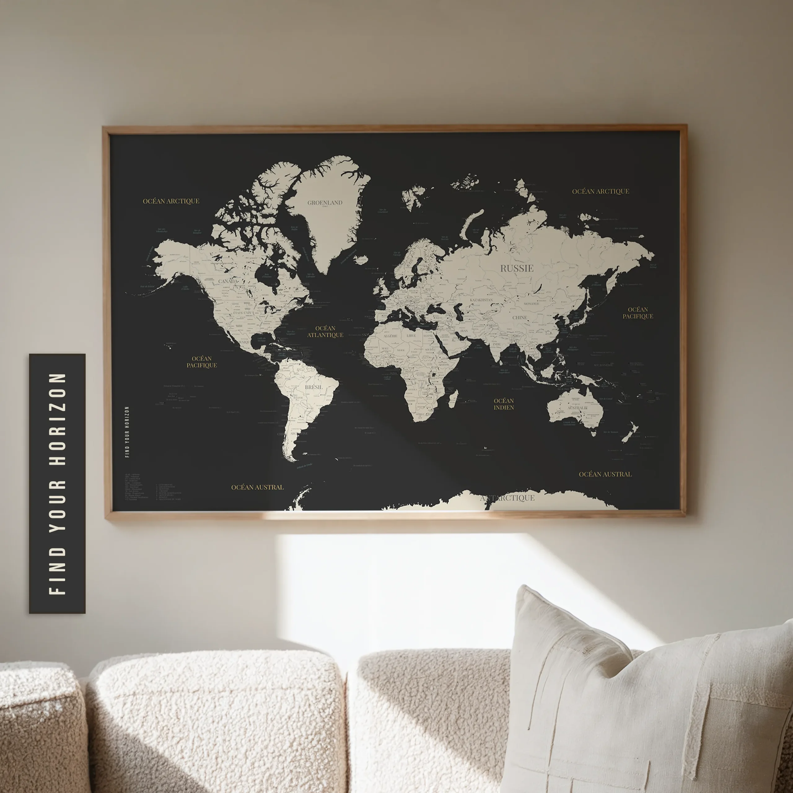 Malo est bien plus qu’une affiche beige et noir : c’est un planisphère détaillé avec les noms des plus grandes villes du monde, pensé pour sublimer une décoration moderne et industrielle.